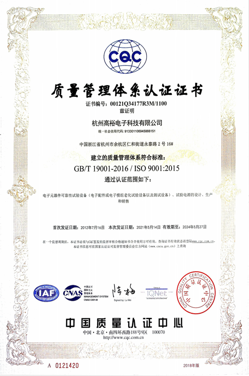 質(zhì)量管理體系認證證書